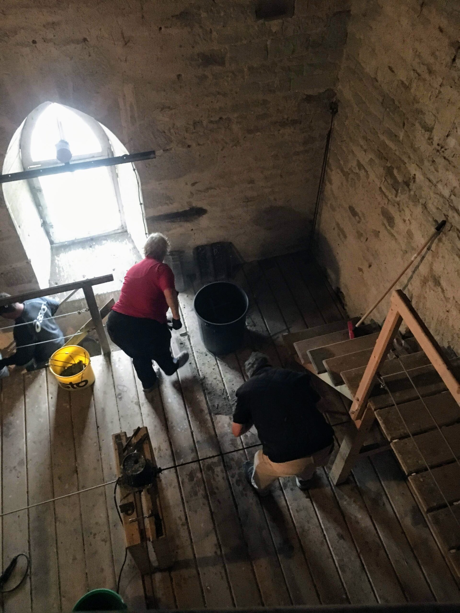 Quelques bonnes volontés de notre Club se sont jointes à Michel et Dominique VAUTHIER pour donner un coup de propre au clocher et aux escaliers qui y mènent .