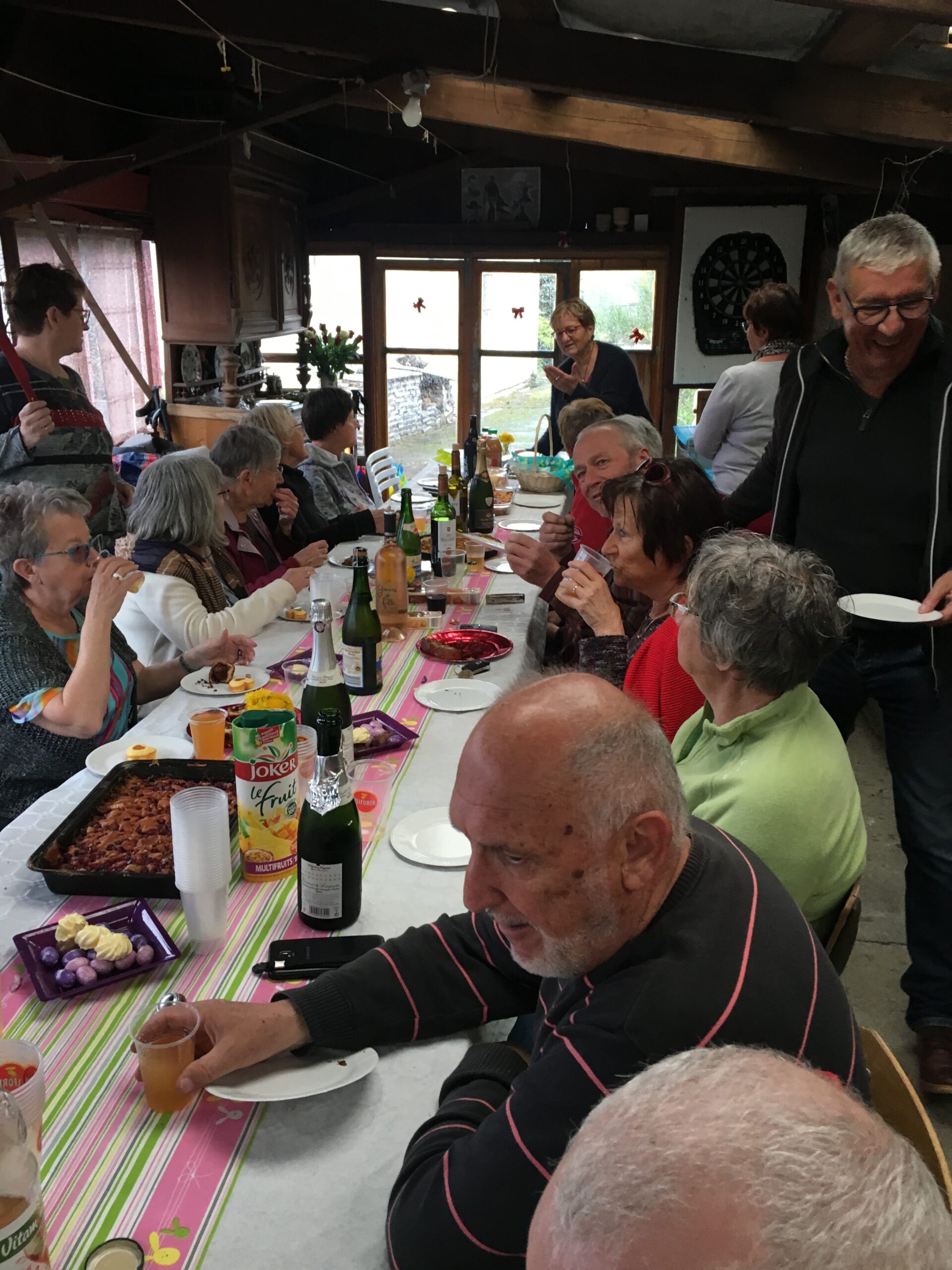 Heureusement pour terminer cet après-midi, Maryvonne s’est superbement rattrapée (comme d’habitude) et nous a servi un copieux casse-croûte avec une multitude de bonnes choses…gâteaux, tartes, chocolats et le tout bien sûr arrosé comme il se doit sans modération (on ne la connaît pas….)
