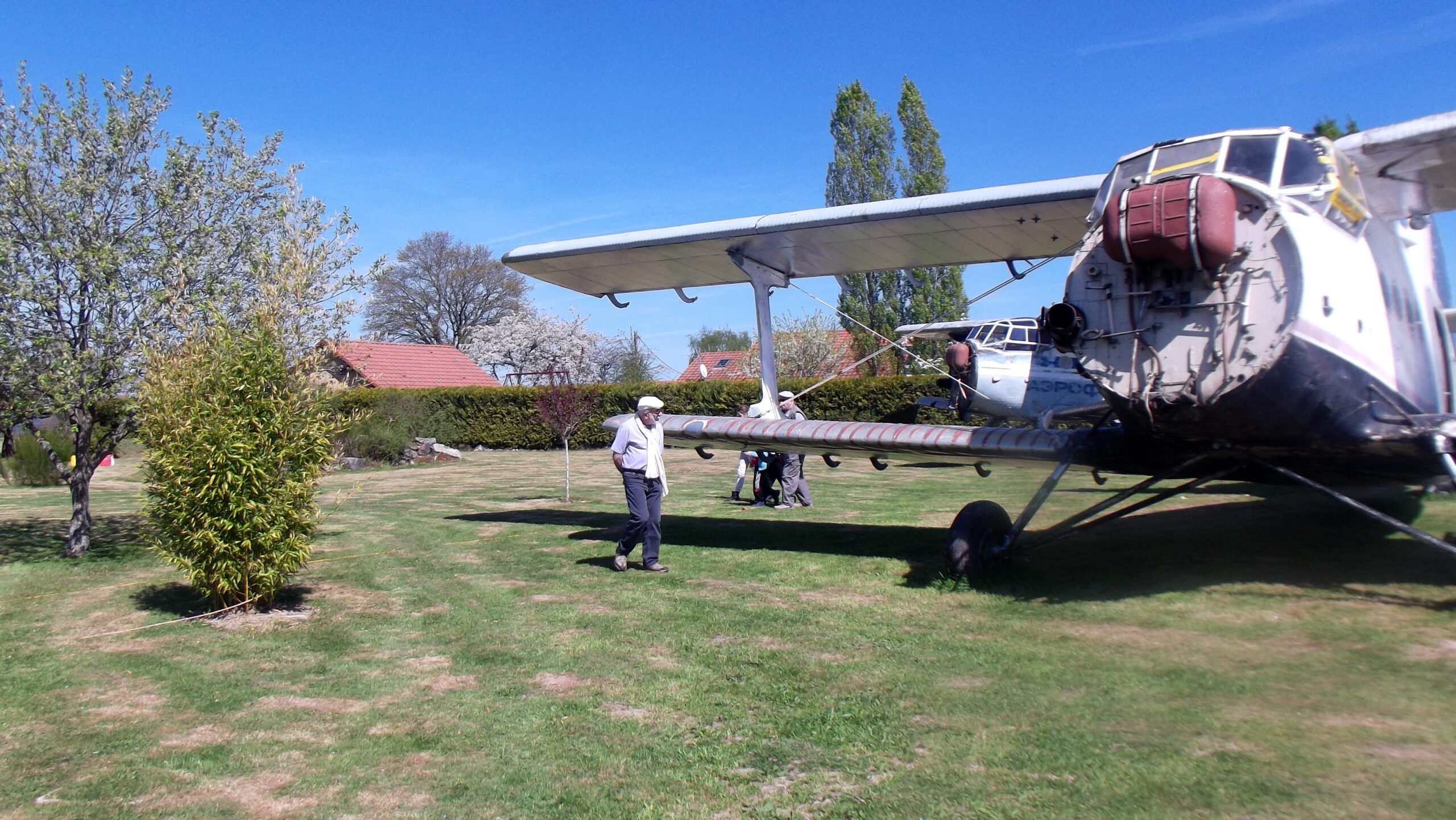 Mr Denis DUCHENE nous présente ses gîtes insolites , une caravelle et deux « antonov » sur le site de Moyenpal.