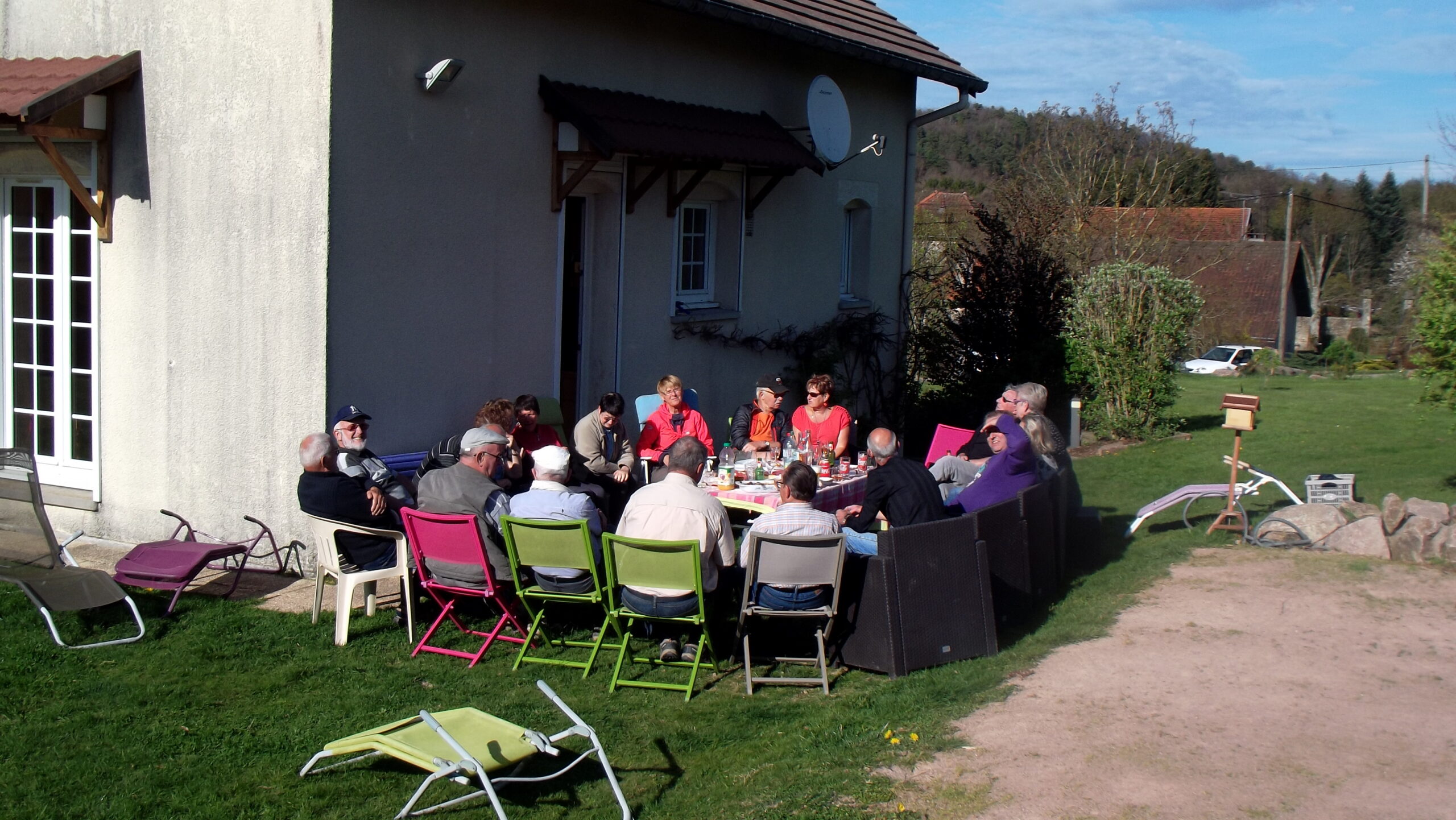 Par une très belle journée ensoleillée, 21 marcheurs de notre club se sont donnés rendez-vous à proximité des avions de MOYENPAL. Après une visite sommaire de la caravelle et des deux Antonov soviètiques, départ pour un circuit d’environ sept kilomètres peaufiné par FRANCOIS avec pour but les ruines de l’ancien zoo d’ UZEMAIN. Deux heures d’efforts récompensés par un copieux goûter préparé par Christine à son domicile.