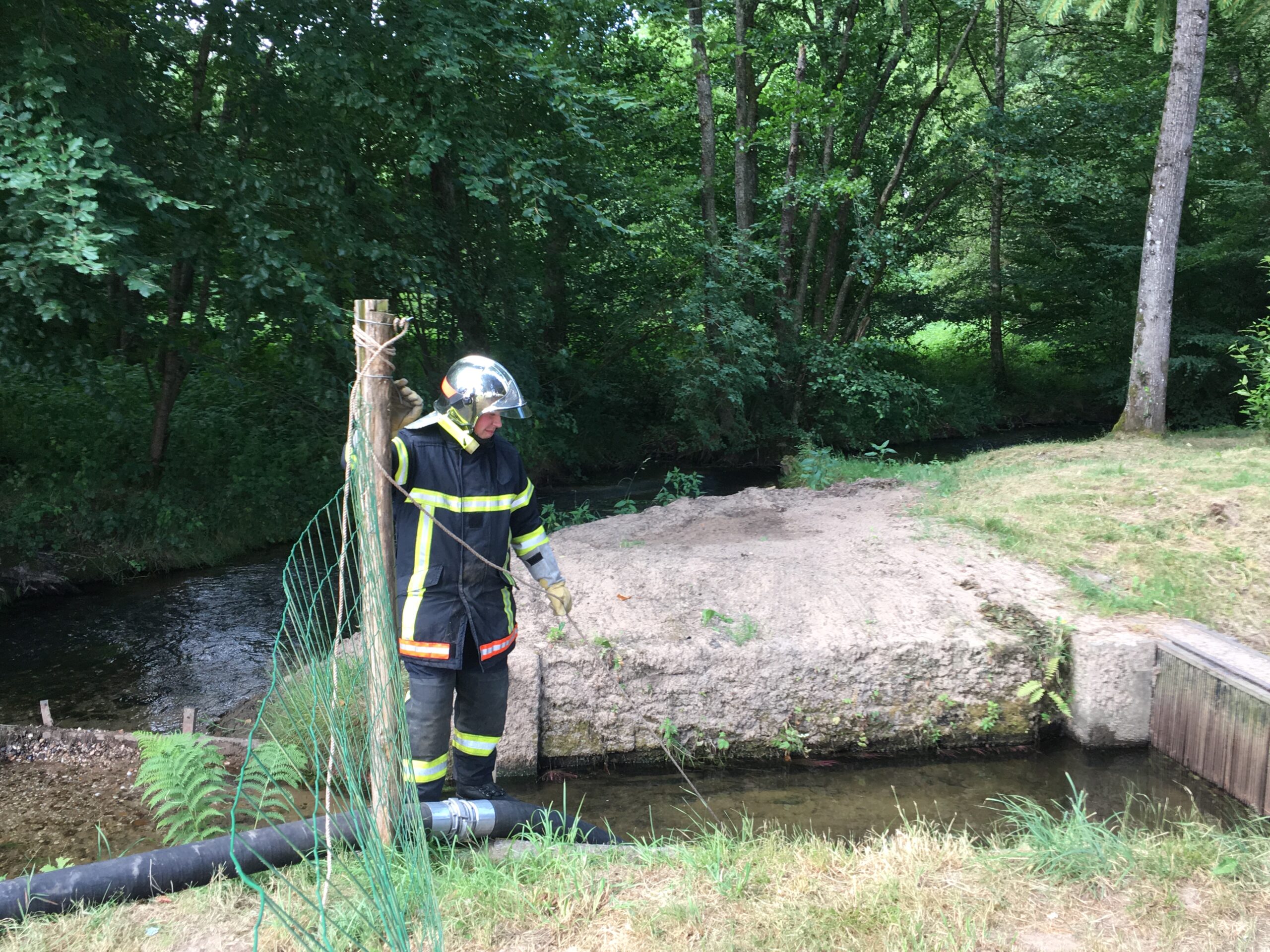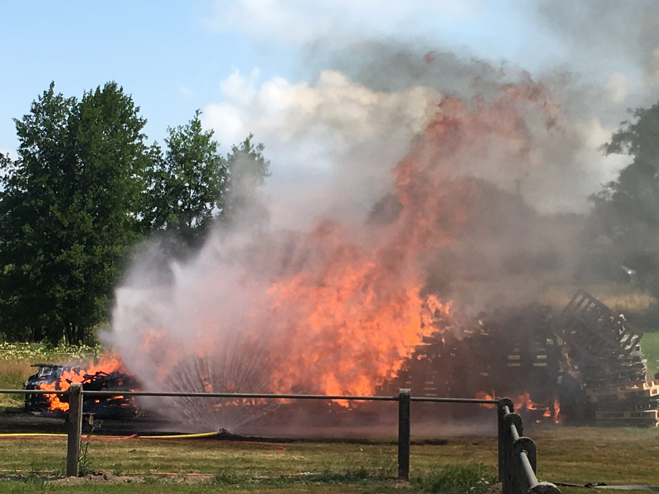 Vers 11h30 grande démonstration des pompiers aux abords du stade , comment éteindre un énorme incendie de palettes avec notamment la présence active des jeunes recrues.
