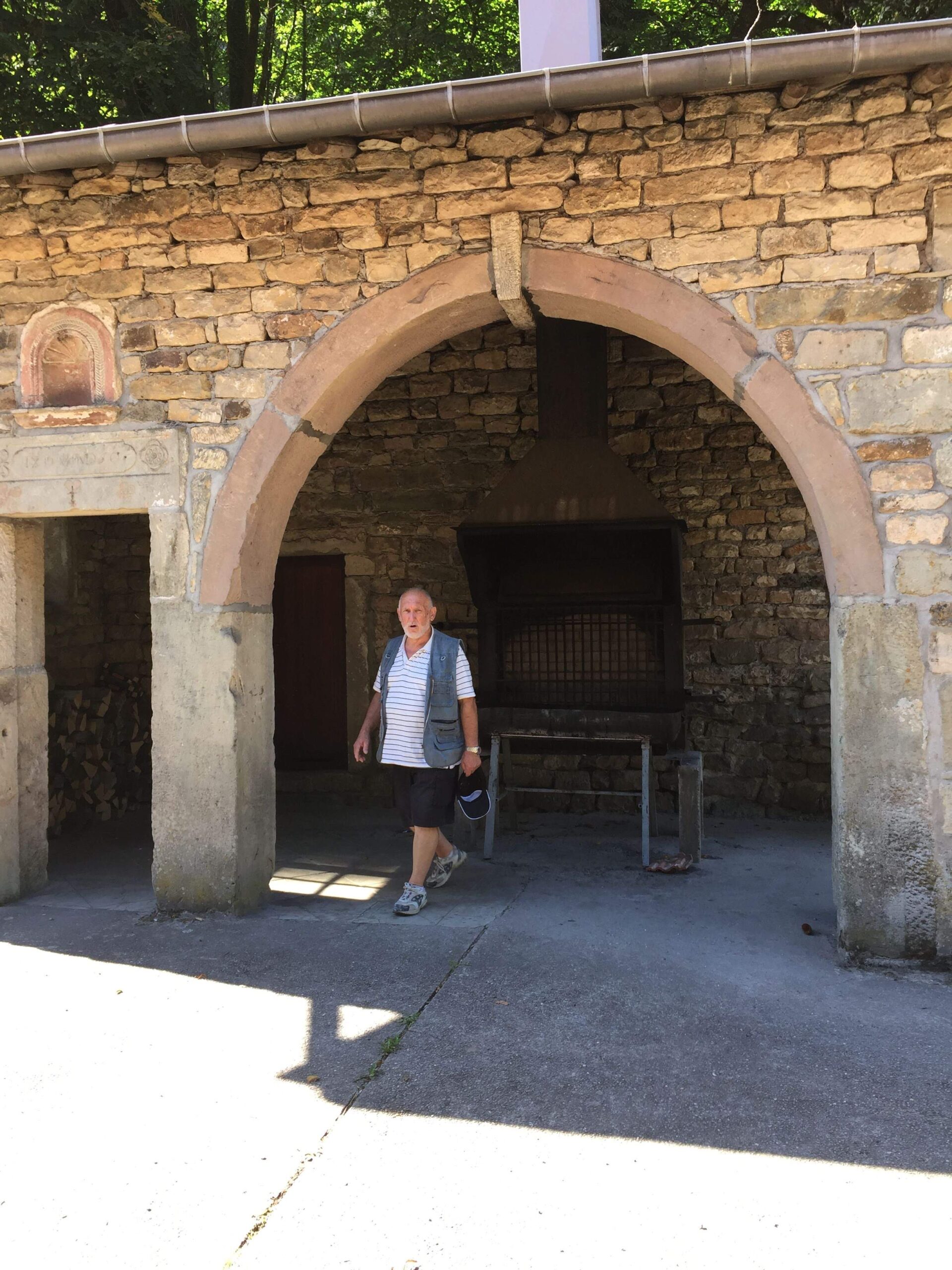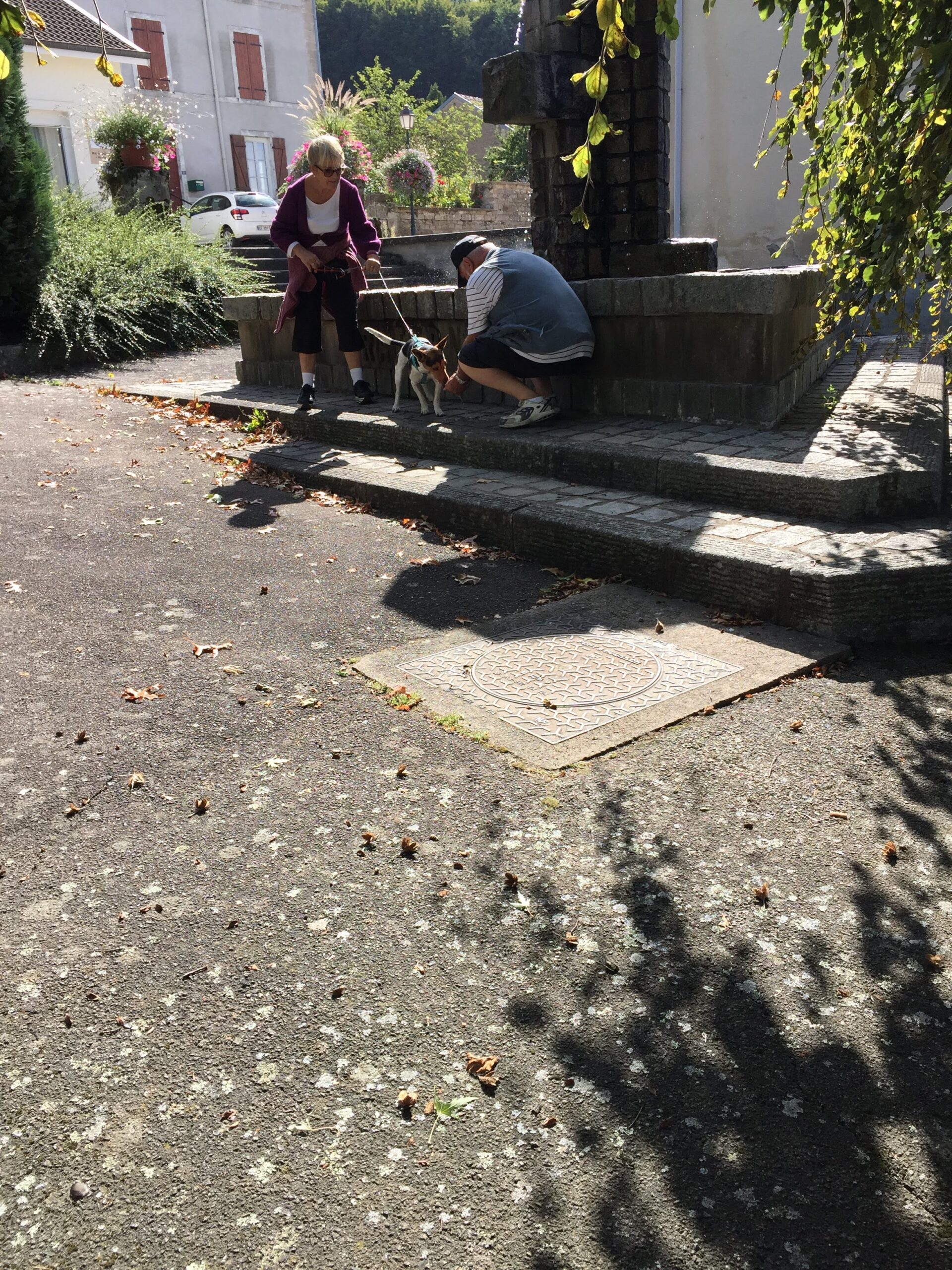 Après 7 kilomètres, pot de réconfort bien mérité chez nos hôtes à AMEREY. Belle et bonne réception, merci Evelyne (malgré un petit rhume) et Jean- Luc.