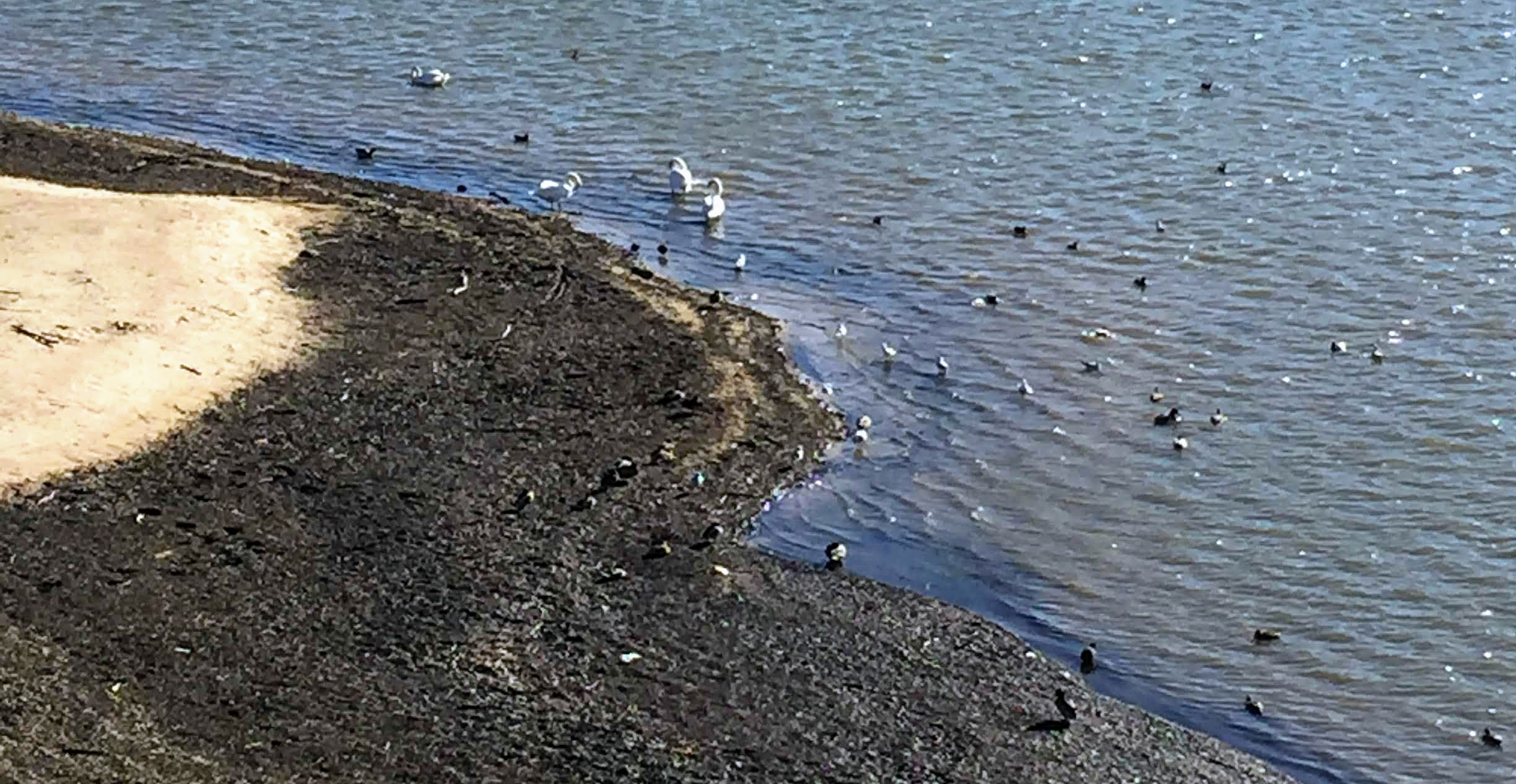 Retour par la digue avec un arrêt pour des commentaires détaillés de Michel.