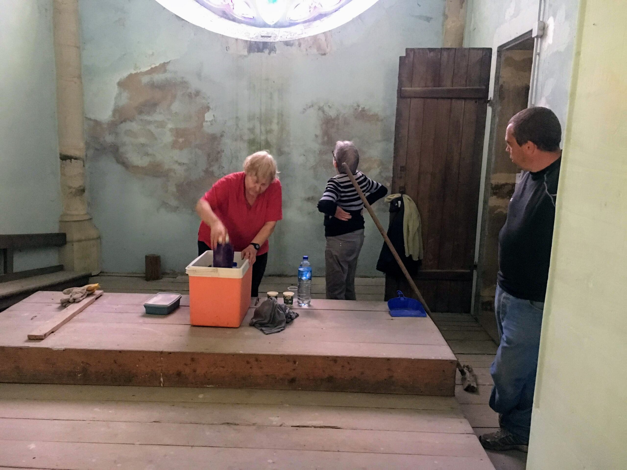Quelques bonnes volontés de notre Club se sont jointes à Michel et Dominique  VAUTHIER pour donner un coup de propre au clocher et aux escaliers qui y mènent .