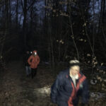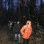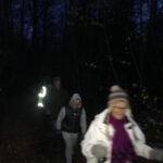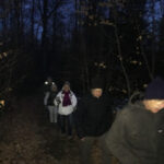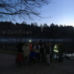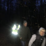 La nuit commence à tomber, petit arrêt photo au bord de l’étang du Bult et allumage de nos lampes frontales qui en plus de nous éclairer le sentier forment une belle guirlande de points lumineux dans le noir. A part quelques traces au sol et avec regret, nous n’avons pas rencontré ni même aperçu de présence animale.